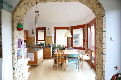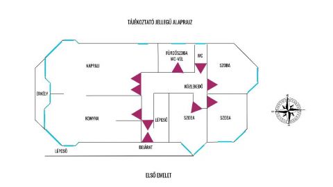 Minden szinten van nappali és három hálószoba, konyha, fürdő wc-vel és külön wc is. A földszinten egy garázs is található. Kiváló befektetési lehetőség is, mert az egyes szintek teljesértékű lakások, így ezek külön-külön kiadhatók.