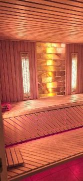 Wellnessrészleg: 60.000 literes, fűthető, 10 méteres medence, Finn szauna, infraszauna és sókamra egyben.
