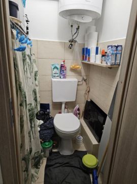 A lakás elrendezése: 2 szoba, étkezős konyha, fürdőszoba, külön wc, előszoba. A lakáshoz alapító okirat szerint tartozik egy 7m2-es pincerekesz. A padláson pedig tulajdoni hányadnak megfelelően tároló rész.