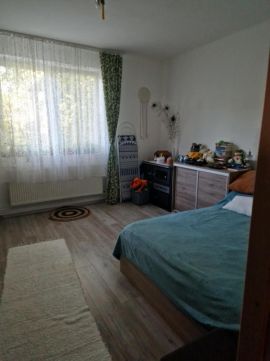A lakás csendes, ősfás részen található közelben az óvoda, bolt, buszmegálló, gyógyszertár, könyvtár, étterem, kormányhivatal.