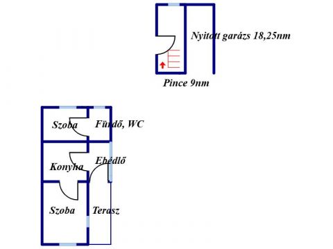 Ház 51 nm: 2 szoba, konyha, ebédlő, fürdőszoba, tároló és pince helyiségekből áll. Területe 432 nm kivett / lakóház, udvar, melyhez 2935 nm kert tartozik, ez a része kifüggesztést igényel. A területe így 3367 nm, melyet a tulajdonos együtt szeretne értékesíteni.