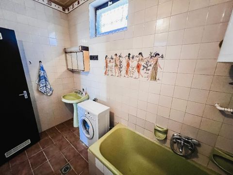 A szobák parkettával, a többi helyiség járólappal burkolt.