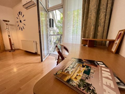 Világos, harmonikus terek és zöldre néző ablakok jellemzik ezt az amerikai konyhás nappalival rendelkező lakást. Kiváló választás mindazoknak, akik a város szívében keresnek nyugalmat és természetközeli otthont akár saját maguk vagy bérlőik számára.