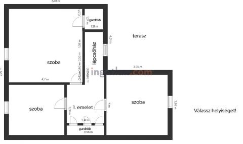 Emeleten :gardróbszekrény(4 nm), hálószoba (16 nm), vendégszoba (12 nm), gyerekszoba (20 nm)