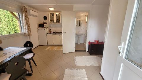 Eladó Balatonkenese központjához közel, csendes mellékutcában, egy 58 m2-es hétvégi ház.