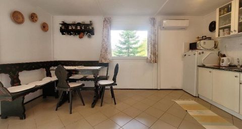 A zsindely tetejű ingatlant 25 éve teljesen felújították, kialakították a részben fedett teraszt, majd 10 éve kibővítették még egy helyiséggel. A jelenleg 2,5 szobás ház fűtése elektromos panelekkel, illetve légkondicionálóval is lehetséges. A melegvizet egy 80 literes elektromos bojler adja.