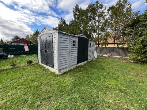 Hegyeshalomban, a Dózsa György utcában, egy 48 m2-es, téglaépítésű sorházi lakás eladó, közös, nagy kerttel és egy 12 m2-es műanyag kerti házzal.