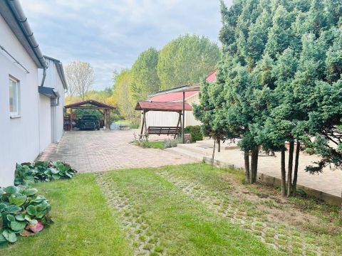 A 95 m2 hasznos alapterületű ingatlan 2209 m2-es, parkosított telken helyezkedik el, rendezett, térkövezett udvarral.