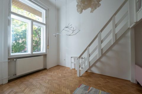 A harmadik emeleti lakás egy rendezett, jó állapotú házban található, ahol a legtöbb ablak zöld, fás belső udvarra néz, így a nyugalom garantált ? mégis mindössze pár perc sétára van a Margit-sziget, a Szent István park és a Duna-part.