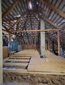 Szigetelés: jelenleg nincs, de a tulajdonos tervezte a hőszigetelést és új kazán beszerelését.