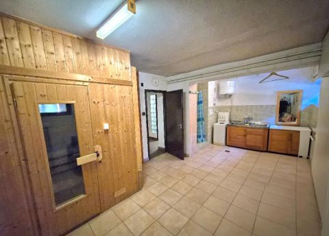 Nagyobb szoba szaunával, zuhanyzóval, konyhával.