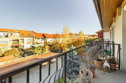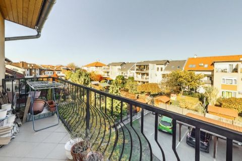 Dunakeszin, a Toldi lakóparkban eladó egy nettó 69, bruttó 90 négyzetméteres, napfényes, 2. emeleti lakás két erkéllyel (10 és 5 négyzetméter).