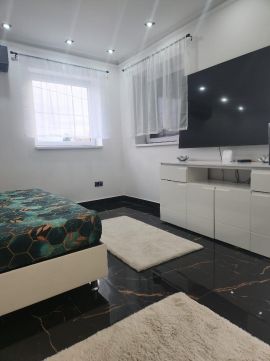 Emelet: két hálószoba, kádas fürdőszoba.