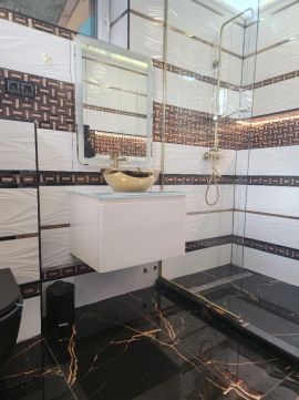 Zuhanyzós fürdőszoba és előszoba.