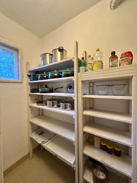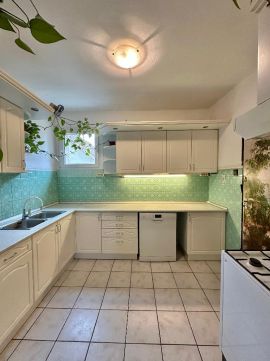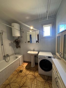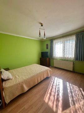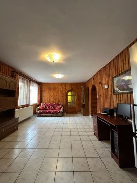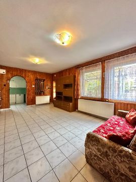 A házban 3 szoba + nappali, fürdőszoba, konyha, kamra, WC és két előszoba található. A teljes épület alatt egy gépkocsitárolóra vagy műhelyre alkalmas helyiség van ahol külön leválasztva található a kazán helyiség is. A nappali 25,4 m?-es, déli tájolású, így világos és tágas. A fűtés gázzal, cirkó rendszerrel megoldott, de klímák is találhatók.