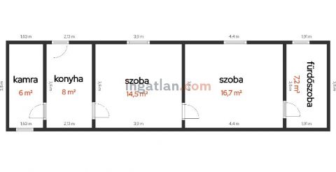Ebben a lakrészben két szoba, konyha, kamra és fürdőszoba található, a víz- és villanyhálózat itt is megújult.