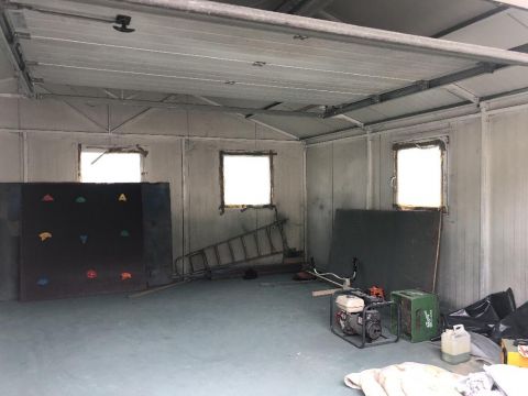 A területen két épület, egy acélszerkezetű ponyvával fedett raktár és egy fedett autóbeálló található. A teljes épület 2013-ban lett felújítva a villanyvezetékek teljes körű cseréjével.