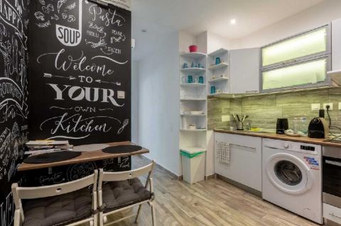 A fűtés elektromos, a lakás klímával felszerelt, redőnyök, valamint beépített konyhabútor is rendelkezésre állnak.