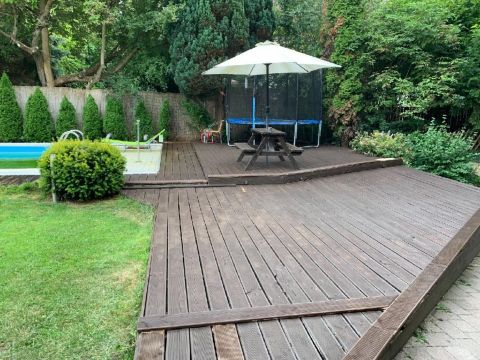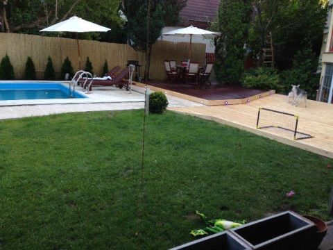 Az 1077 nm-es telken - fenyők, gyümölcsfák, tuják, cserjék gyűrűjében - kíváncsi szemektől elzárva, rendezett közös kertben pihenhetjük ki egy hosszú nap fáradalmait. A szintén közös használatú 8x4 méteres fedhető medence is az új tulajdonosok kényelmét és kikapcsolódását biztosítja.