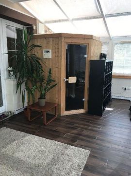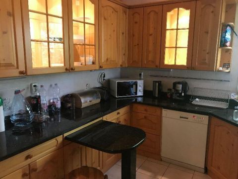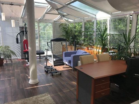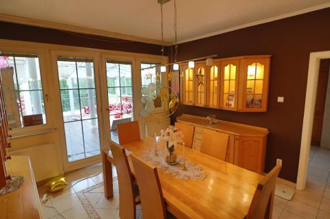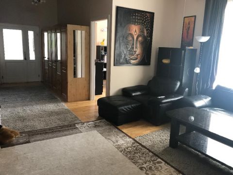 A békés kertvárosi zöldövezetben elhelyezkedő 1. emeleti 4 szobás lakás dupla nappalival, tágas tömör fenyőfa konyha-étkezővel, három hálószobával, nagyméretű fürdőszobával (fürdőkáddal és zuhanyzóval), külön WC-vel és tárolóval rendelkezik. Az ingatlanhoz tartozik egy 50 nm-es télikert, finn szaunával, egy 20 nm-es terasz és egy 8 nm-es fedett erkély. A lakás azonnal költözhető, igényesen bútorozott, gépesített, szép állapotú.