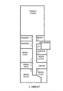 Az épületben lift és irodai célra kiépített számítógép hálózat elosztószekrény is segíti a zökkenőmentes munkavégzést.