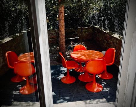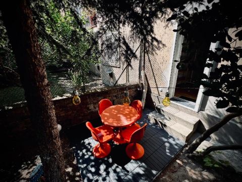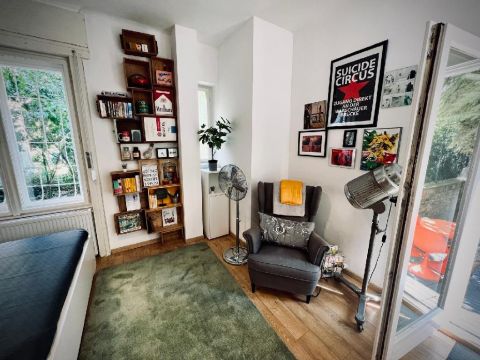 A nappaliból egy intim kis teraszra, valamint a kertbe jutunk, ha nyáron szeretnénk csendes, zöld környezetben elfogyasztani a kávénkat, vagy csak áthívnánk a barátokat. A lakás összes ablaka is erre a kis kertre nyílik.