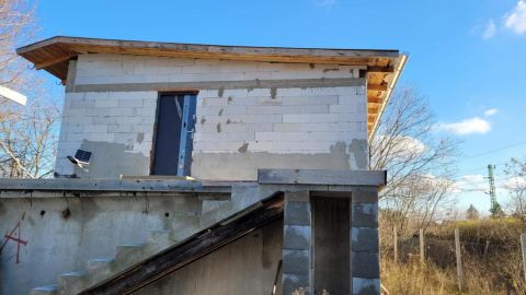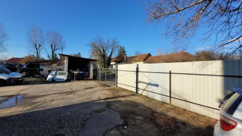 A jelenleg 50m2-es 2 szintes épület áll a telken, amelyben autó szerelőműhely, iroda, konyha, mellékhelyiség található , A felső szintet még nem használják.