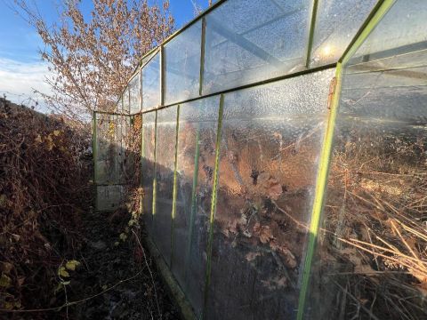 A telek egy részén, körülbelül a felétől végig virág- és zöldségtermesztésre használt, gázfűtéses üvegház található.
