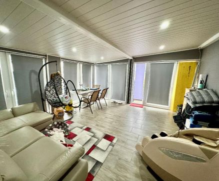 A telek, ami két utcafronttal rendelkezik és két teljes értékű, különálló családi házat foglal magában, így ideális nagycsaládosoknak, többgenerációs együttéléshez, befektetési vagy vállalkozási célra is. A 2016-ban épült, 84 m2-es, egyszintes főépület, valamint a 2025-ben épült, 101 m2-es, kétszintes épület együttesen biztosítanak kényelmes és modern életteret. A főépület igazi különlegessége a dedikált, 9 férőhelyes multiplex mozi, amely professzionális hangzással és kényelmes, prémium mozifotelekkel biztosít valódi filmszínházi élményt az otthon nyugalmában.