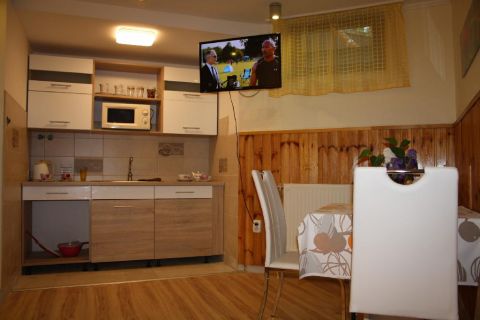 Az udvarban 5-6 autó kényelmes parkolása biztosított. A parkosított telken fa játszótér és épített grillterasz áll a vendégek rendelkezésére.