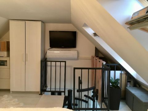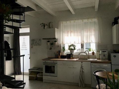 Szentendrén, közel a Bükkös patakhoz, a Duna-parthoz és a belvároshoz, 35nm-es galériázott lakás (papíron 32nm) 7nm-es terasszal eladó.
