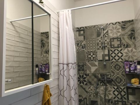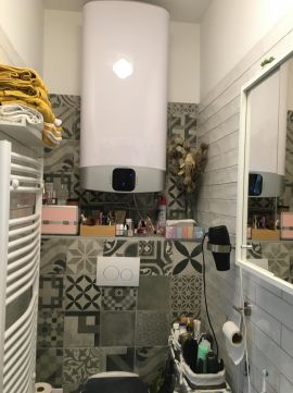Az alsó szinten egy amerikai konyhás nappali (24nm) és egy zuhanyzó+WC (2,5nm) található. A felső szinten egy 26,5nm-es szoba, amelynek 1,9m magas része 8,5nm.