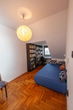 ELADÓ Bp. XIV. Kerületben Zuglóban, Alsórákoson egy 66 nm-es 1+2 szobás, erkélyes, 3. emeleti, tetőtéri lakás. Az ár tartalmazza a lakáshoz kizárólagosan tartozó önálló tárolót és egy garázst a társasház saját kertjéből történő beállással.