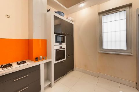 Az ingatlan 54,8 nm-es, 4. emeleti, klímás, 2 nagy szobával, tágas étkezős konyhával, fürdőszobával (WC-vel) és előszobával rendelkezik. A tulajdonos a teljeskörű felújítást 2023-ban végeztette el, minőségi anyagok kerültek beépítésre, igényes a kivitelezés. A konyha Bosch gépekkel lett felszerelve, a fürdőszoba is nagyon igényes kialakítású. Mindkét szobában beépített szekrények és galériák lettek kialakítva. A galériák több, mint 10 nm-esek. A lakás központi elhelyezkedése ellenére csendes, a szobák ablakai egy széles udvarra tekintenek, így nagyon világos. Az ingatlanhoz tartozik egy tároló a pincében, amely 6 nm-es. Boltok, iskolák, egyetemek a közelben, 2-es metró, villamos, busz mindössze pár perc sétára találhatók.