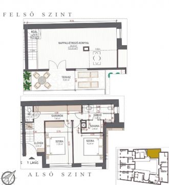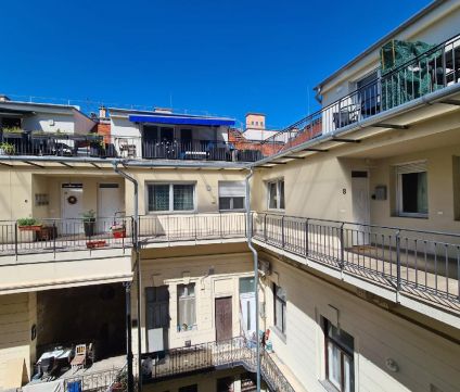 Eladó Budapest VI. kerületében, felújított liftes házban egy 2016-ban épült, 72 négyzetméteres, prémium kivitelezésű duplex lakás, saját 16 négyzetméteres tetőterasszal és szaunával.