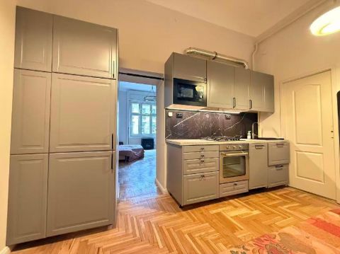 A közös költség 17 000 Ft/hó. Parkolás az utcán, fizetős övezetben lehetséges. Főbb jellemzők: 1 + 1 szoba 38 nm (43 nm valós) 2. emelet Tégla szerkezet Teljes felújítás: 2024 Összkomfort Gázkonvektor + klíma Liftes épület Bútorozott, berendezett Redőny, beépített konyhabútor Napfényes, déli tájolás Utcai kilátás