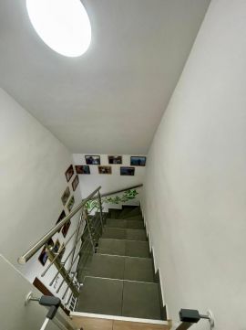 A földszinten igényes hidegburkolatok, függesztett gipszkarton álmennyezet és energiatakarékos LED világítás került kialakításra. Az optikai internetkapcsolat, a kiépített riasztó- és kamerarendszer, valamint az átgondolt elektromos kiállások tovább növelik az ingatlan értékét.