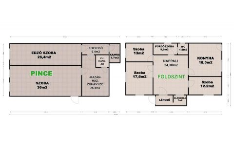 A lakóépület földszinti alapterülete 122 m2 továbbá ugyanekkora, 122 m2-es igényesen kialakított, fűthető és lakható pincehelyiséggel rendelkezik. Az ingatlan minden extrával felszerelt kényelmes és magas színvonalú mindennapi használatra kialakítva.