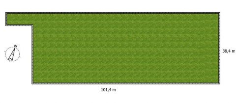 A telek kiváló adottságokkal rendelkezik, 38,4 méteres utcafronti szélessége és 101 méteres hossza jól kihasználható, arányos beépítést tesz lehetővé.