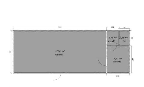 Az ingatlan belső kialakítása praktikus és sokoldalúan hasznosítható: bemutatóteremnek, irodának, szolgáltató egységnek vagy akár kisebb rendelőnek is kiválóan alkalmas. A teakonyha és a külön mosdó önálló, hosszú távon is kényelmes működést tesz lehetővé.