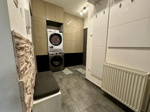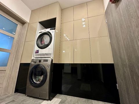 - Előszobában dupla mosógép elhelyezésére alkalmas kialakítás