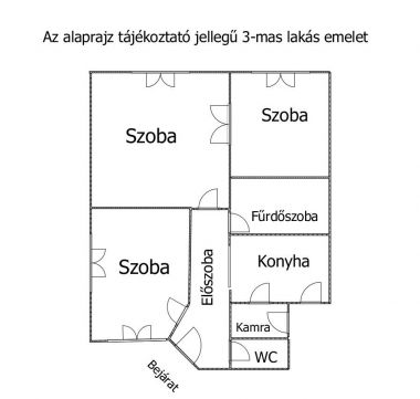 Elrendezés: 3 szoba, Étkezős konyha, Fürdőszoba, 2 külön WC, Előszoba Kondenzációs kazánnal fűthető.