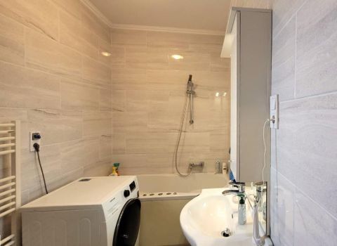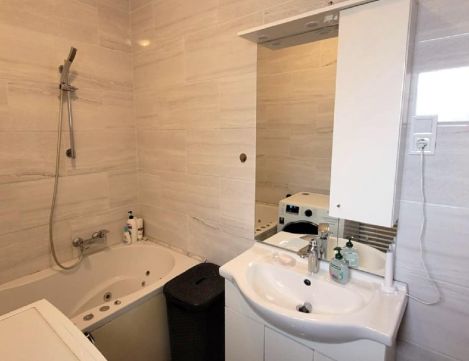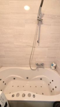 A fürdőszobába JACUZZI kádat építettek be. A padló burkolata gránit, míg az oldalfalak minőségi, stílusos burkolatot kaptak.