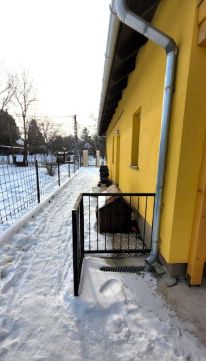 A bejárati ajtóhoz mindössze EGY alacsony lépcsőfok vezet, tehát lehet teljesen