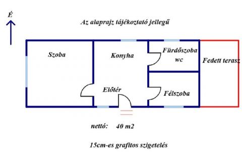 Nettó, fűtött hasznos alapterülete: 40m2+ 7m2 teasz fele (14 m2 terasszal rendelkezik).