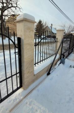 A nagy kapu elektromos tolóajtós, így az autóból ki sem kell szállni kinyitni a kaput.