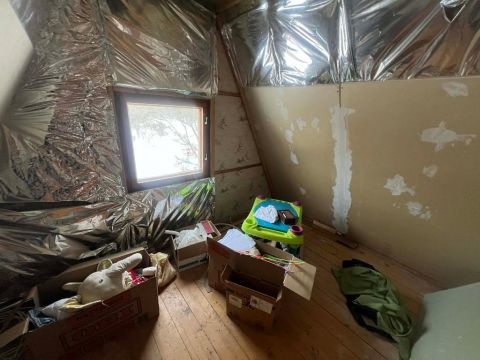 A két szintes, beton alapzatú, belülről szigetelt faház egy 556 nm-es telken helyezkedik el.