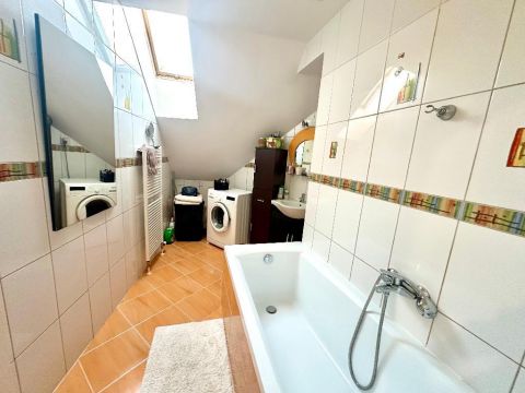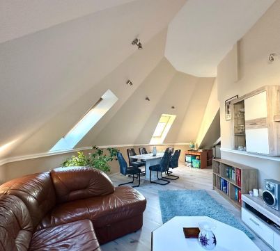 Miskolc egyik központi, mégis nyugodt részén, a Dayka Gábor utcában eladó egy 3. emeleti, tégla építésű lakás, amely hivatalosan 67m2, azonban a tetőtéri kialakításának köszönhetően valójában 89m2 hasznos alapterülettel rendelkezik. A nagy dőlésszögű falak és az épület kupolaalakzatának köszönhetően a lakásnak egyedi hangulata van - barátságos, világos terek jellemzik.
