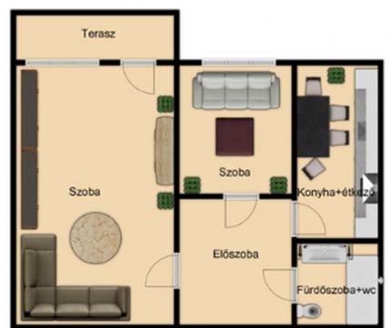 -a világos beltérben: előszoba , 1szoba+1 félszoba , konyha +étkező , fürdőszoba + wc , erkély került kialakításra.