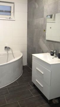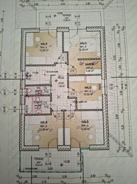 Az emeleten 5 db szoba, gardrób szoba, egy kádas fürdőszoba wc-vel, egy külön wc és egy közlekedő található.
